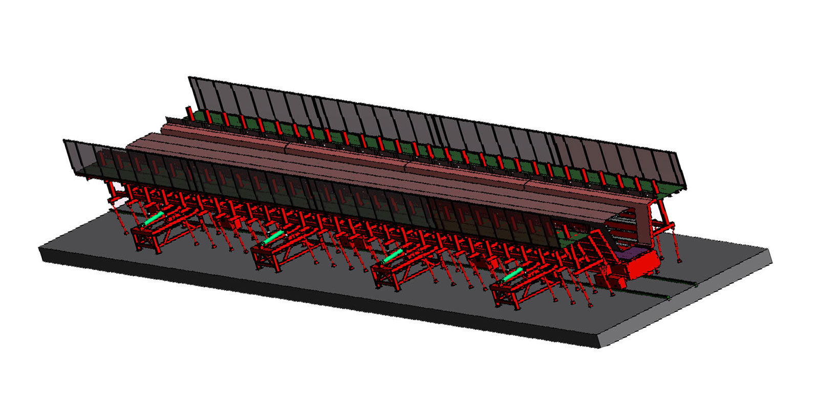 PC固定模臺柔性生產(chǎn)線既有固定模臺生產(chǎn)線的低設(shè)備投入,又具有自動化生產(chǎn)線的高度機械化,自動化特點。