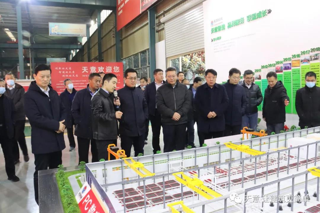 天意機(jī)械總經(jīng)理劉海龍向江副書記一行介紹了公司運(yùn)營(yíng)和裝配式建筑未來(lái)發(fā)展規(guī)劃等相關(guān)情況,并對(duì)天意機(jī)械裝配式建筑自動(dòng)化PC生產(chǎn)線項(xiàng)目進(jìn)行了詳細(xì)介紹。江副書記一行對(duì)天意機(jī)械創(chuàng)新產(chǎn)品的技術(shù)先進(jìn)性以及對(duì)裝配式建筑發(fā)展的引領(lǐng)和帶動(dòng)作用給予了高度贊揚(yáng)。并表示將結(jié)合本地實(shí)際情況,取長(zhǎng)補(bǔ)短,學(xué)習(xí)借鑒天意機(jī)械的好經(jīng)驗(yàn)好做法,把考察學(xué)習(xí)成果轉(zhuǎn)化為推動(dòng)本地企業(yè)發(fā)展的強(qiáng)大動(dòng)力和有力舉措。