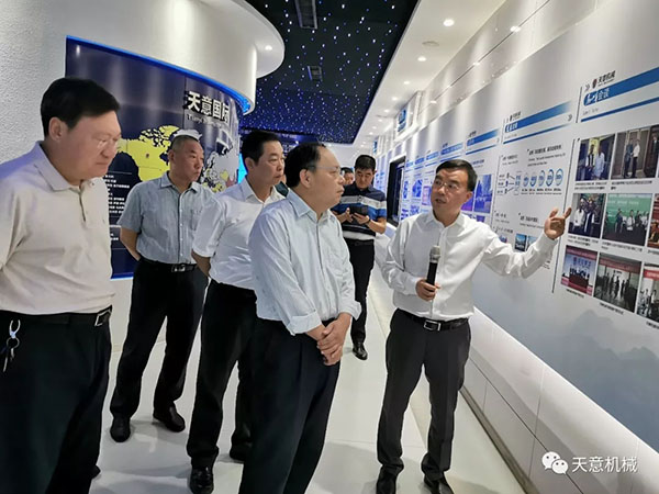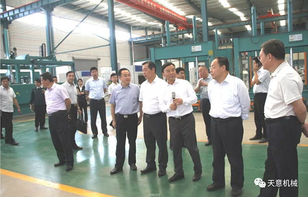 2019年9月23日,濟寧市人大常委副主任陳國華蒞臨天意機械考察指導,區(qū)委書記王宏偉,區(qū)人大常委會主任于立武,區(qū)人大常委會副主任趙廣嶺陪同調(diào)研,天意機械董事長劉洪彬陪同各級領(lǐng)導調(diào)研考察。