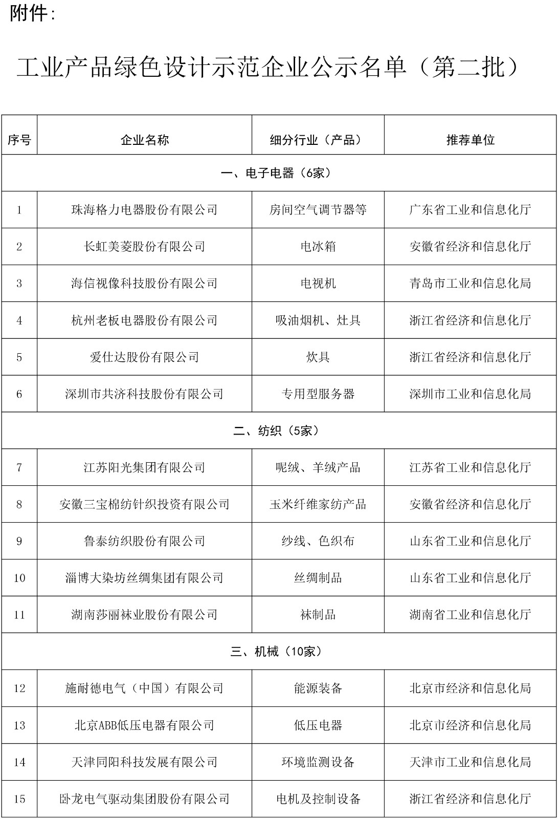 為加快推行工業(yè)產(chǎn)品綠色設(shè)計(jì),促進(jìn)制造業(yè)高質(zhì)量發(fā)展,根據(jù)《工業(yè)和信息化部辦公廳關(guān)于組織推薦第二批工業(yè)產(chǎn)品綠色設(shè)計(jì)示范企業(yè)的通知》(工信廳節(jié)函〔2020〕110號(hào)),經(jīng)企業(yè)自評(píng)估、省級(jí)工業(yè)和信息化主管部門(mén)(或中央企業(yè))推薦及專(zhuān)家評(píng)審,工信部將擬確定為工業(yè)產(chǎn)品綠色設(shè)計(jì)示范企業(yè)(第二批)的名單予以公示。